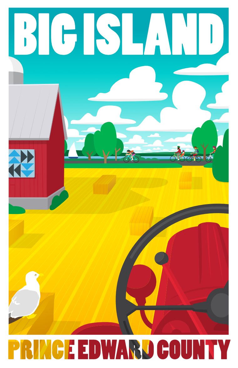 Big Island juts out into the Bay of Quinte in Prince Edward County and was the longtime home of famous canning factories. This poster also highlights the Prince Edward County Barn Quilt Trail!